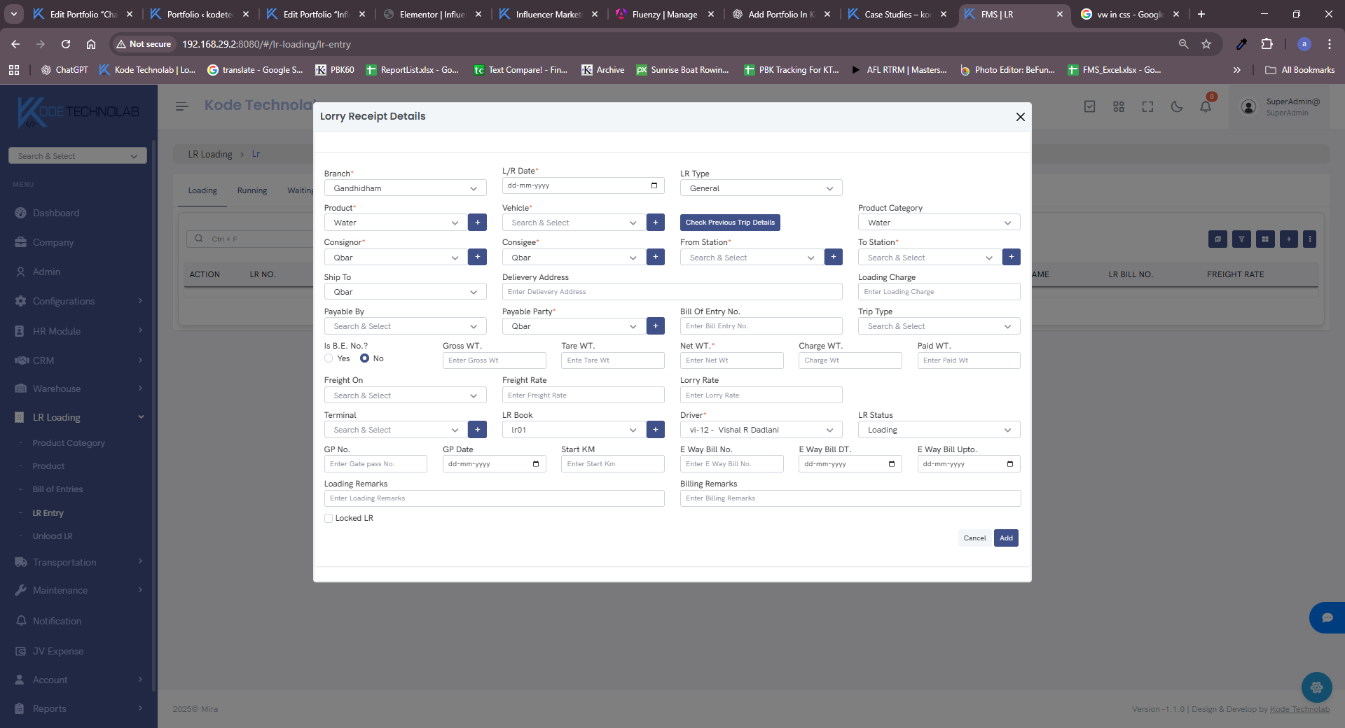 Logistics Management – Handle consignments, LRs (Lorry Receipts), and deliveries with accuracy.